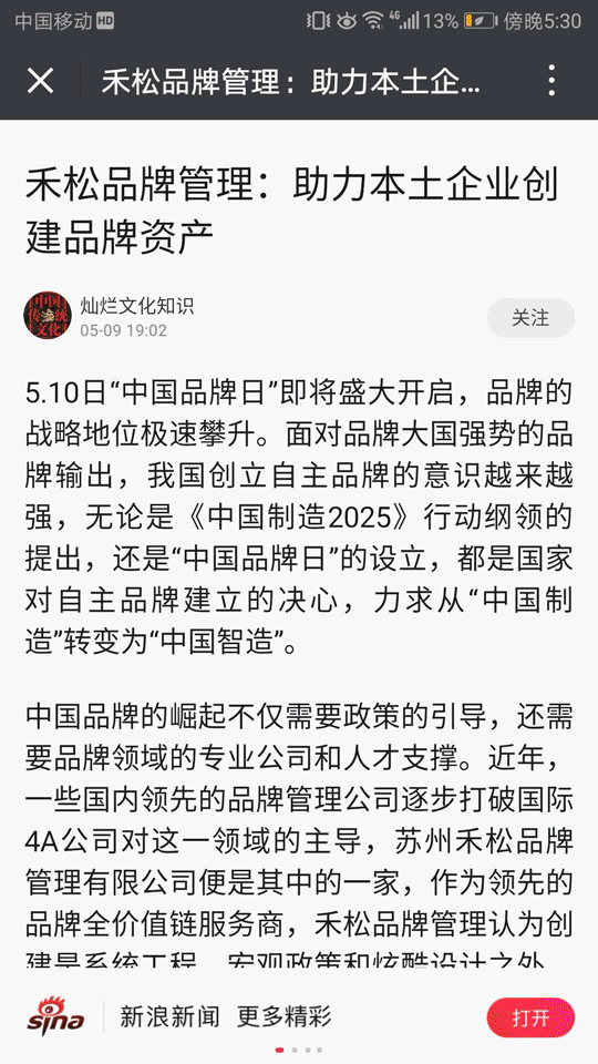 禾松的(de)品牌理(lǐ)論,不僅得(de)到了(le)客戶的(de)認可(kě),也(yě)獲得(de)了(le)各大(dà)媒體的(de)贊揚。就在昨天,禾松獲得(de)了(le)包括中國日報在内的(de)36家主流媒體集體點贊,發文稱贊禾松對(duì)中國品牌崛起所作出的(de)貢獻。