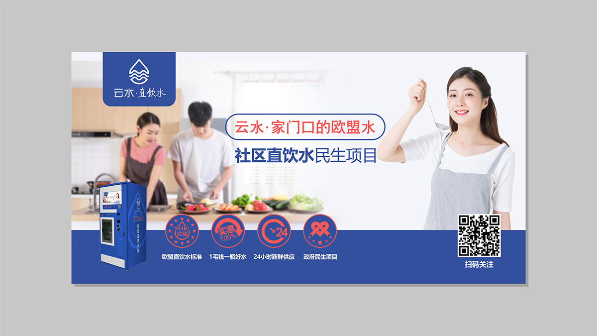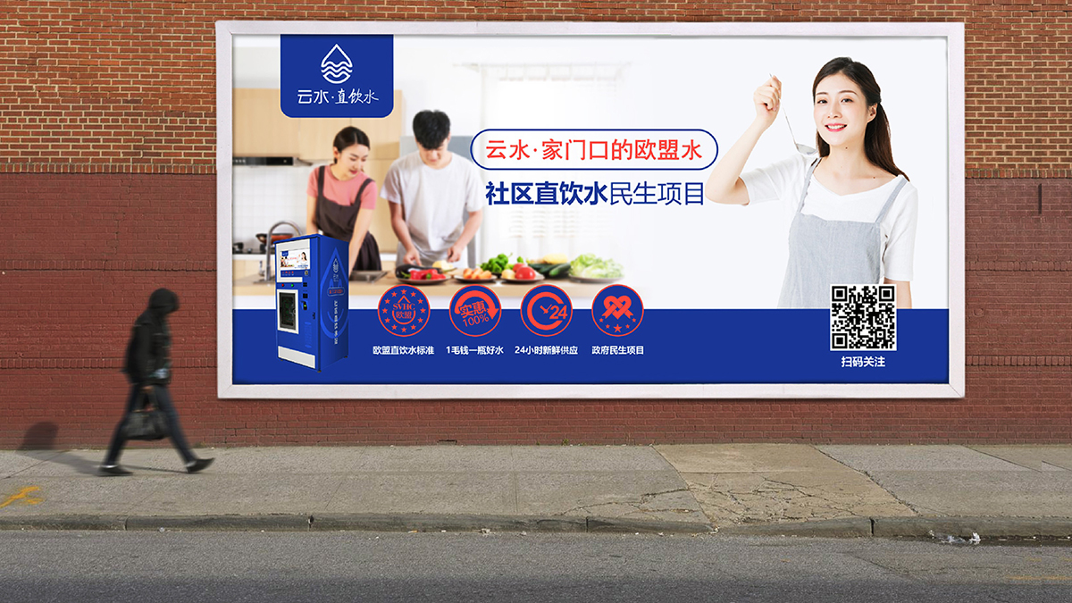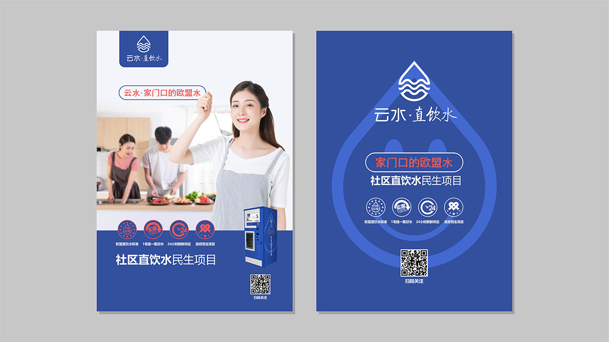 策劃“家門口的(de)歐盟水(shuǐ)” 的(de)廣告語,凸顯水(shuǐ)質核心指标優勢,概念通(tōng)過親和(hé)力的(de)品牌logo和(hé)形象物(wù)料,高(gāo)效傳遞到用(yòng)戶端。