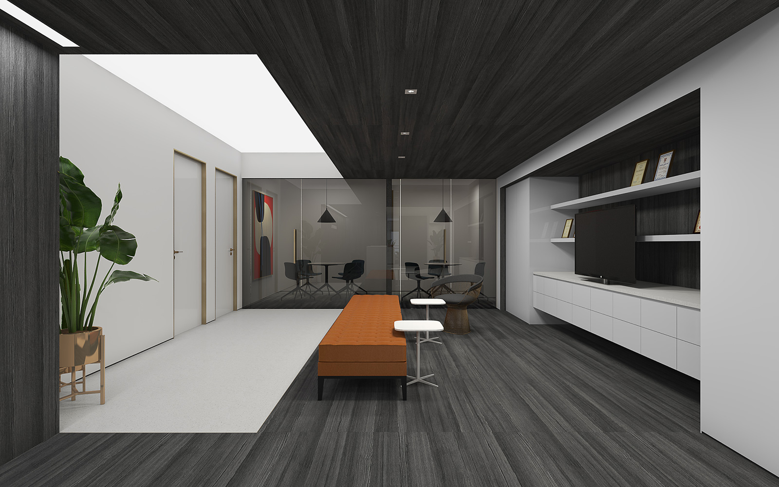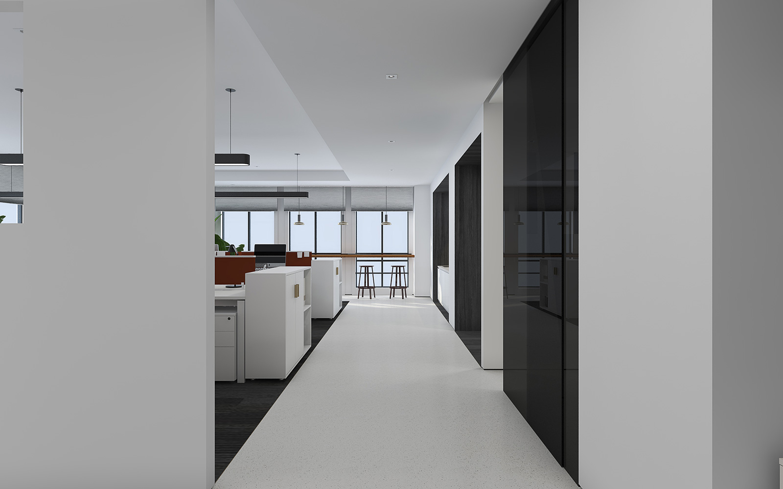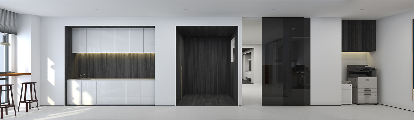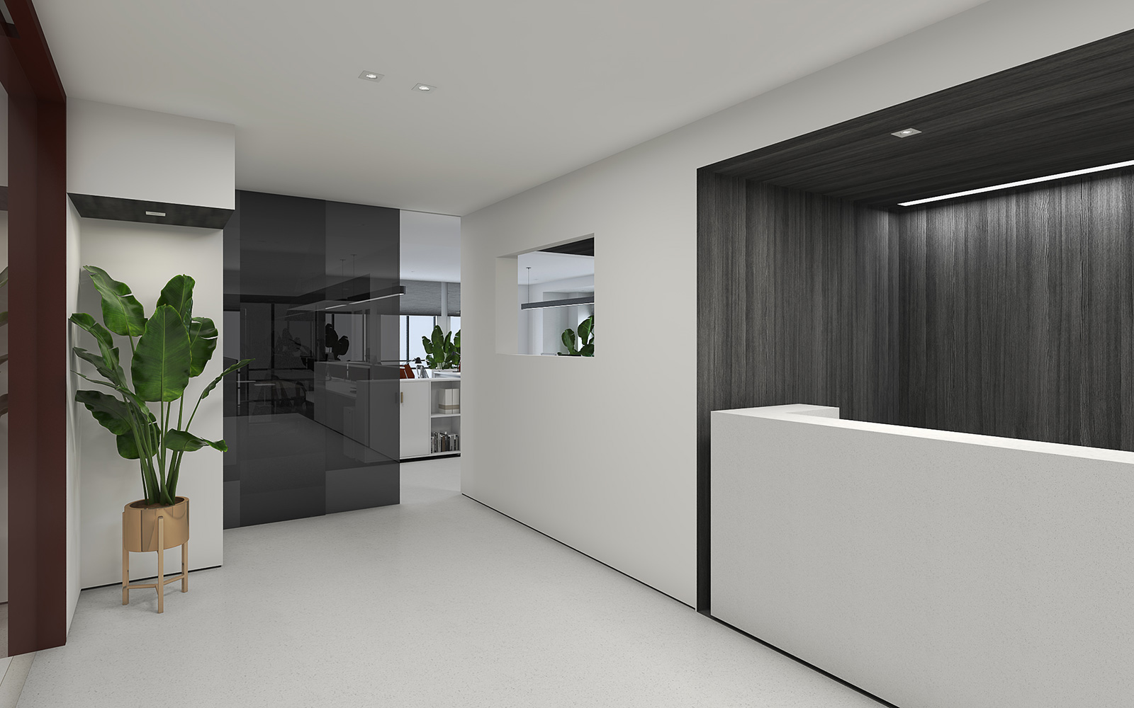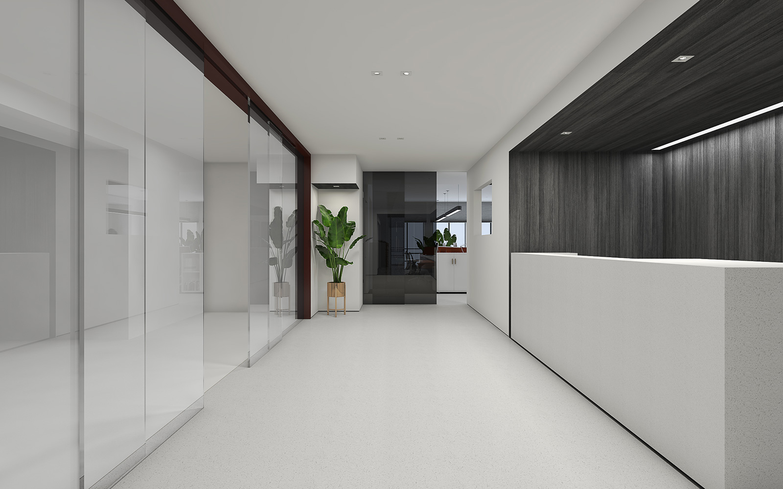 主要材料:水(shuǐ)磨石,防火闆,燈光(guāng)膜,灰色玻璃