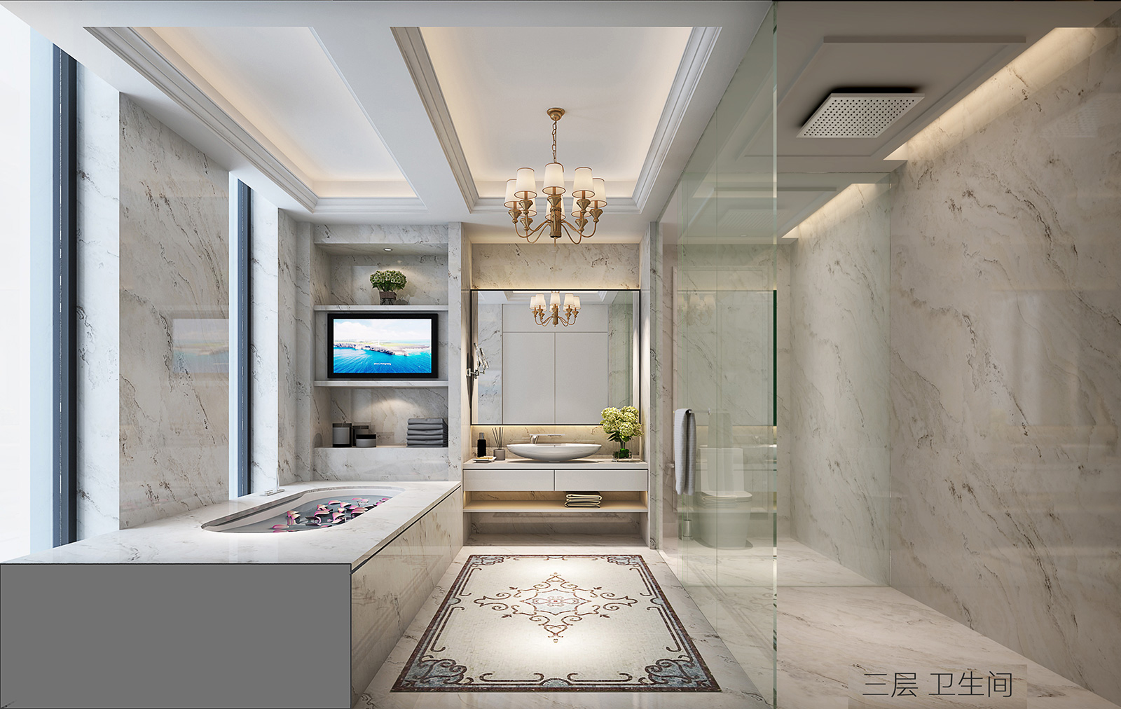 主要材料:玉砂玻璃,石材,牆布