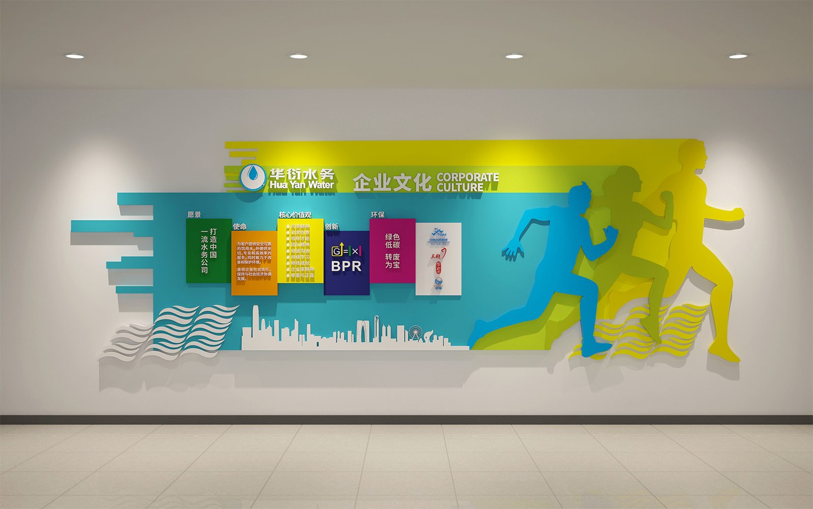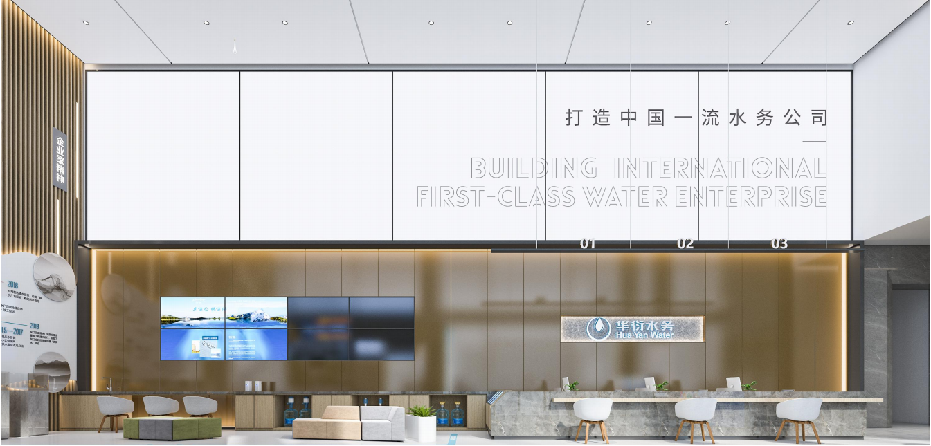 爲打造中國一流的(de)水(shuǐ)務公司,樹立吳江華衍水(shuǐ)務高(gāo)端品牌形象,公司委托禾松爲其打造全新多(duō)功能展廳與新大(dà)樓空間專修項目、導視系統,并對(duì)華衍獨有的(de)IP形象進行深化(huà),制作展廳MG動畫(huà)。