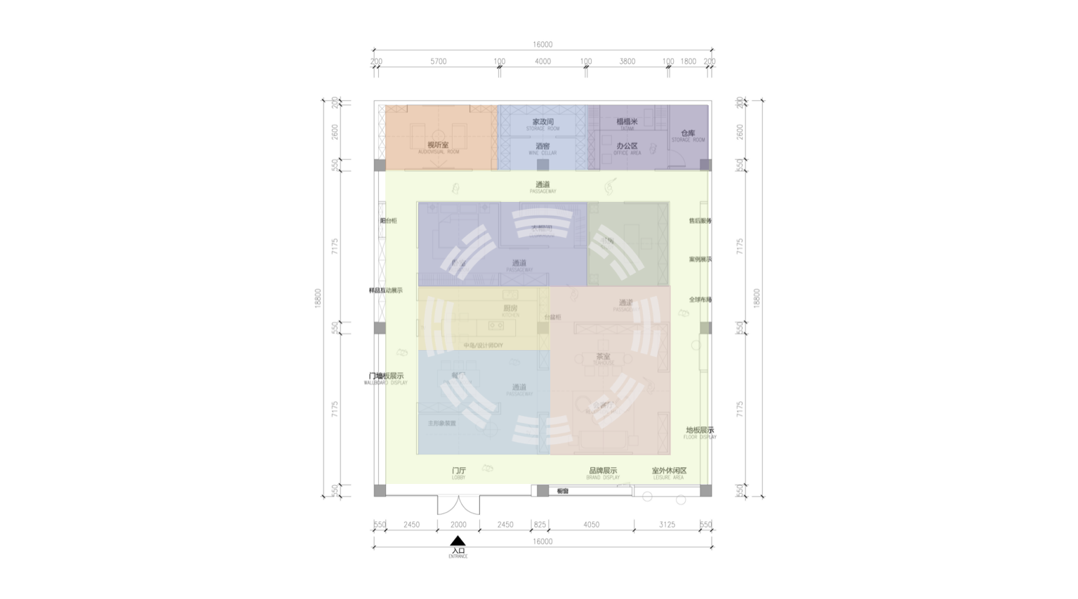 在門店(diàn)空間的(de)布局上,我們借鑒八卦的(de)包羅萬象、四通(tōng)八達,将八卦疊加在空間的(de)布局理(lǐ)念當中,以通(tōng)道貫穿不同功能展示空間,來(lái)表達“移動化(huà)的(de)固定家居”的(de)概念。